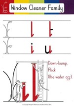 The window cleaners let the Brave Monkey climb the ladder, pull the squeegee down the window, bump the ground and flick the water off! This makes a l and the t.