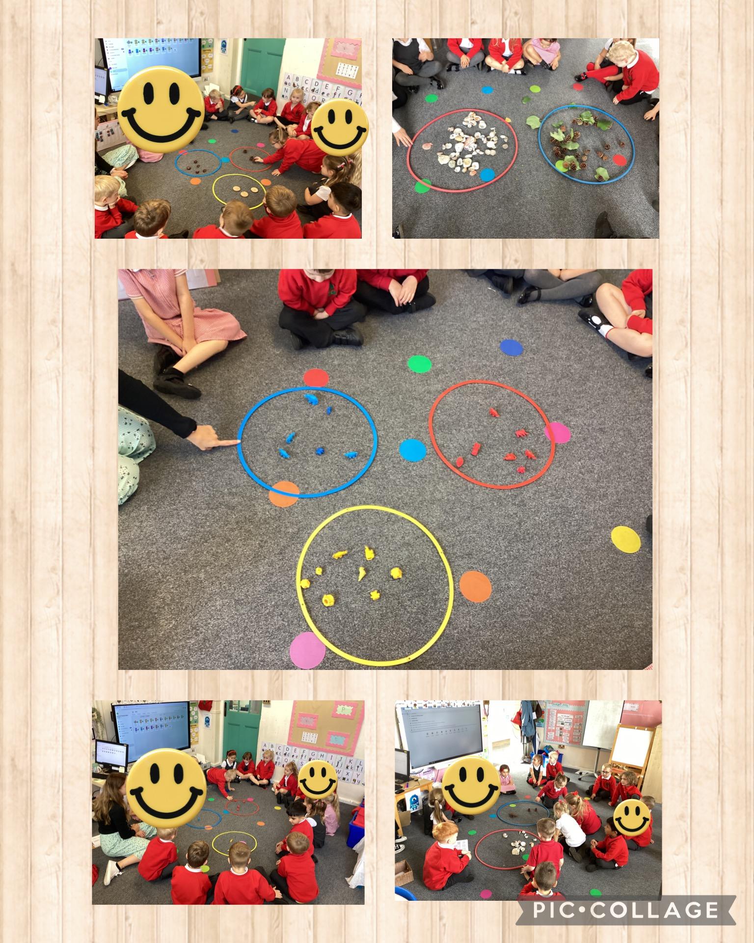 Rabbits and Owls have been super sorters this week. We had collected some shells, pine cones and leaves and had a go at sorting them. We first chose to sort our objects into shells and then not shells. We worked together to assess our objects and choose which hoop our objects should go in. We then had a try at sorting the objects into colours. I wonder if you could have a try at sorting at home? Can you sort your toys?