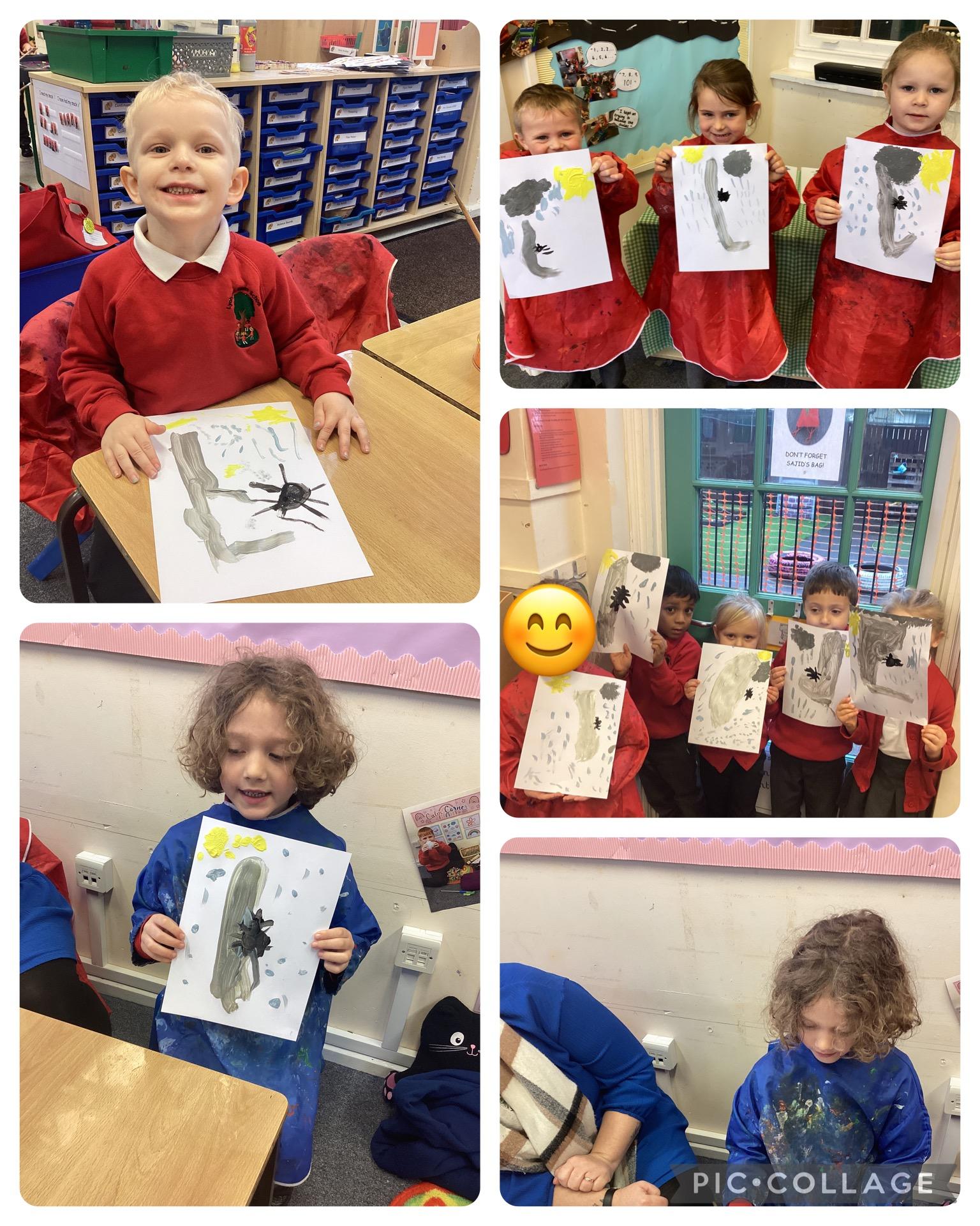 This week we have been exploring the skill of painting! We talked about how to create different effects by using different sized brushes and different ways of applying the brush - dabbing, swiping and dotting. We also spoke about the importance of scraping the excess paint off our brushes each time we dipped. We used these skills to create a picture of ‘Incy Wincy Spider’. We did an amazing job!
