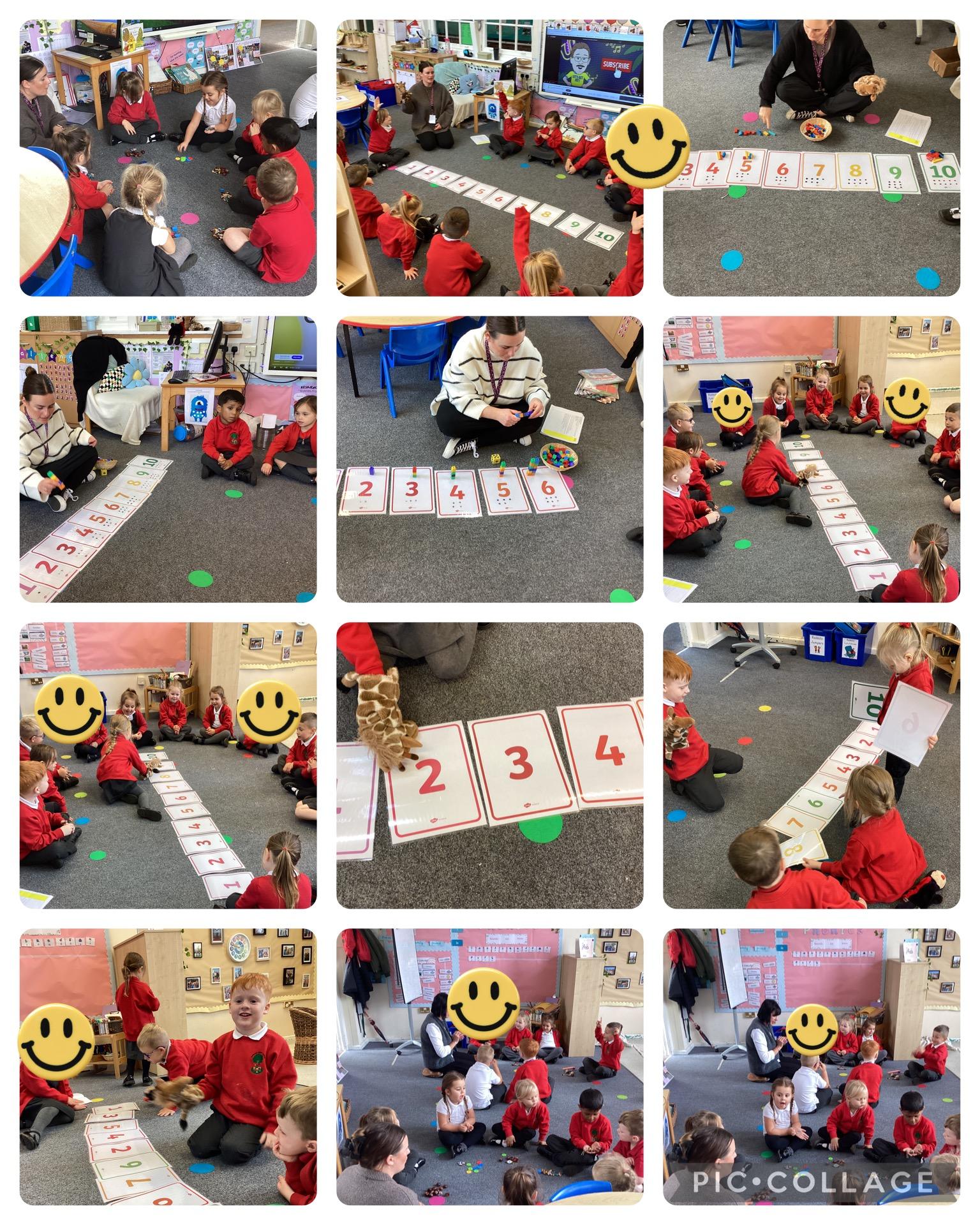 This week, Year R became the Hickory Dickory Dock clock! We listened to the nursery rhyme first and we all knew it really well! We then each became the mouse and when the time on the clock was called, we jumped to the corresponding number in time to the music, and then ran down the clock afterwards. It was so funny and we did a brilliant job at recognising our numbers!