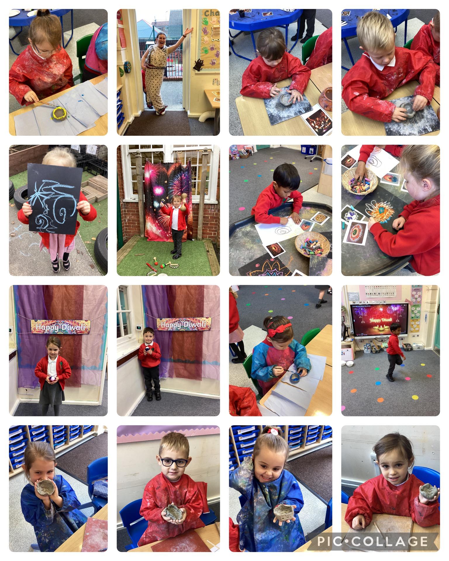 Happy Diwali! The children celebrated the festival of light by listening to music and dancing. Rabbits and Owls were very creative and used their imagination to make their own diya lamp. The children have been thinking outside the box to create their own rangoli patterns using different resources such as chalk and fabric.